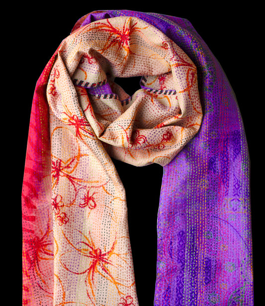Kantha sjaal hergebruikte zijde Rood-Paars