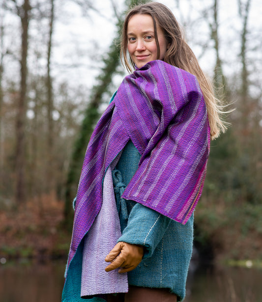 Kantha Sjaal zijde Turquoise-Paars tweezijdig draagbaar