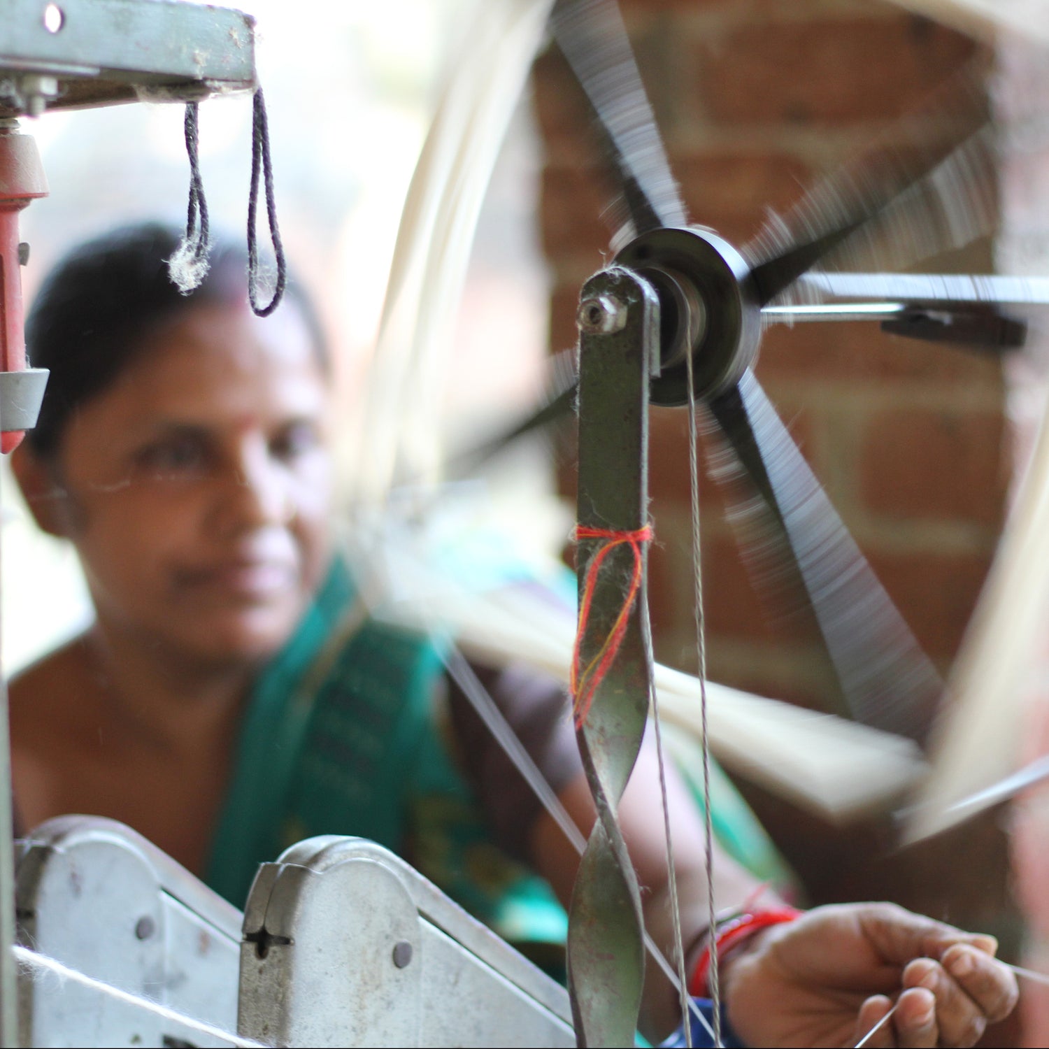 De biologisch katoenen stoffen voor ons eigen merk Via India worden handmatig gesponnen en geweven. Een duurzame productie zonder gebruik van elektriciteit. En met kleurstoffen van plantaardige herkomst. Lees hier het transparante verhaal over onze eerlijke modeketen. Het kan wél.