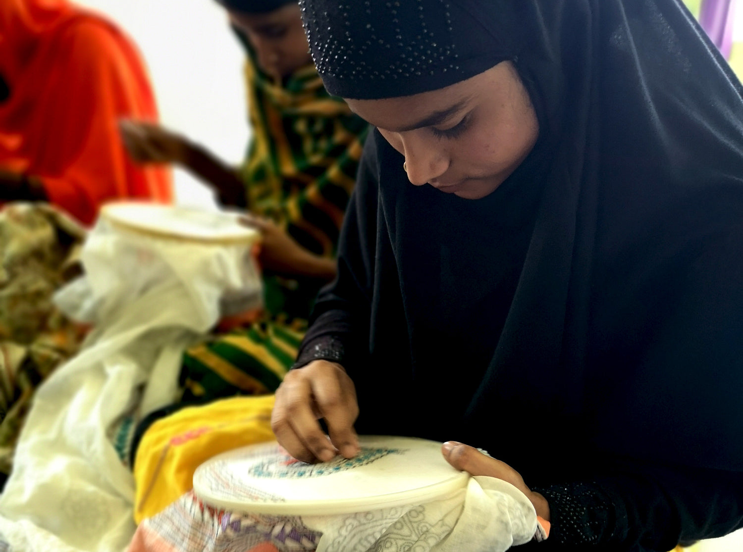 Zo'n honderd vrouwen borduren deze exclusieve nakshi kantha-sjaals. De ontwerpen zijn van één getalenteerde vrouw: Takdira Beghum. Lees het hele verhaal hier: